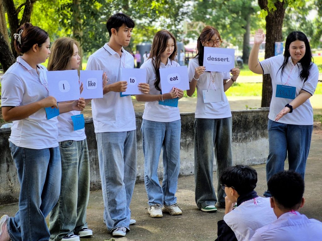 วันศุกร์ที่ 1 สิงหาคม พ.ศ. 2568 คณาจารย์และนักศึกษาชั้นปีที่ 3 สาขาวิชาภาษาอังกฤษเพื่อการจัดการทางธุรกิจ ได้เข้าร่วมโครงการบริการวิชาการคณะครุศาสตร์อุตสาหกรรม ประจำปีการศึกษา 2568 (กิจกรรมส่งเสริมทักษะการออกเสียงภาษาอังกฤษ) ณ โรงเรียนโคกสีพิทยาสรรพ์ อำเภอเมือง จังหวัดขอนแก่น โดยมีวัตถุประสงค์เพื่อให้ความรู้ความเข้าใจเกี่ยวกับการใช้ภาษา การออกเสียงคำศัพท์อย่างถูกต้อง และเสริมสร้างเจตคติที่ดีต่อการเรียนภาษาอังกฤษ